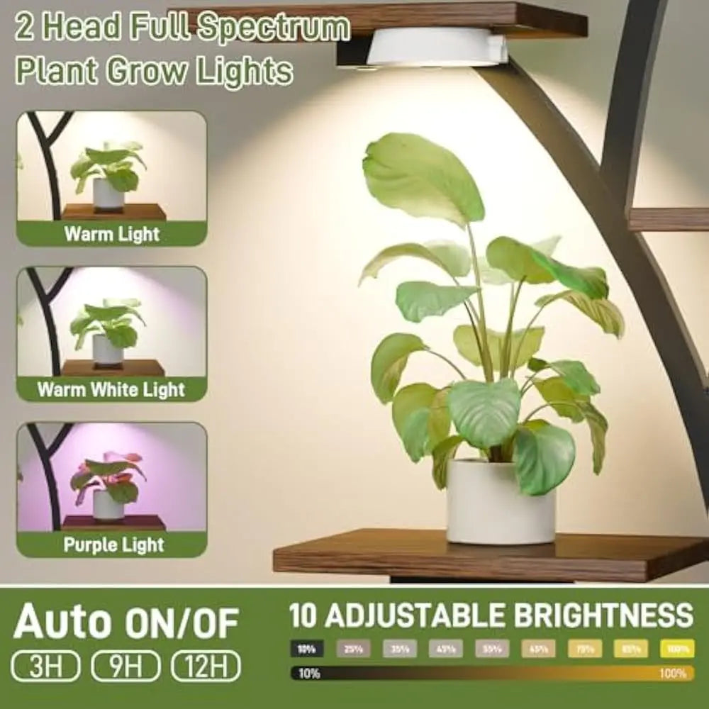 - Grow lights with two-head LED full-spectrum and 3 color modes (warm white + purple, warm, purple), plus 10-level brightness and 3/9/12-hour timers to support growth day and night.