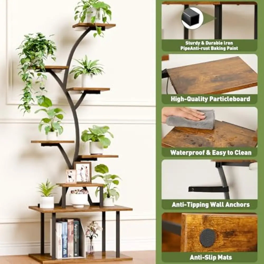 - 54.7" tall S-shaped eight-tier design lets you display a wide range of plants in a compact, tree-like arrangement for maximum space efficiency.
