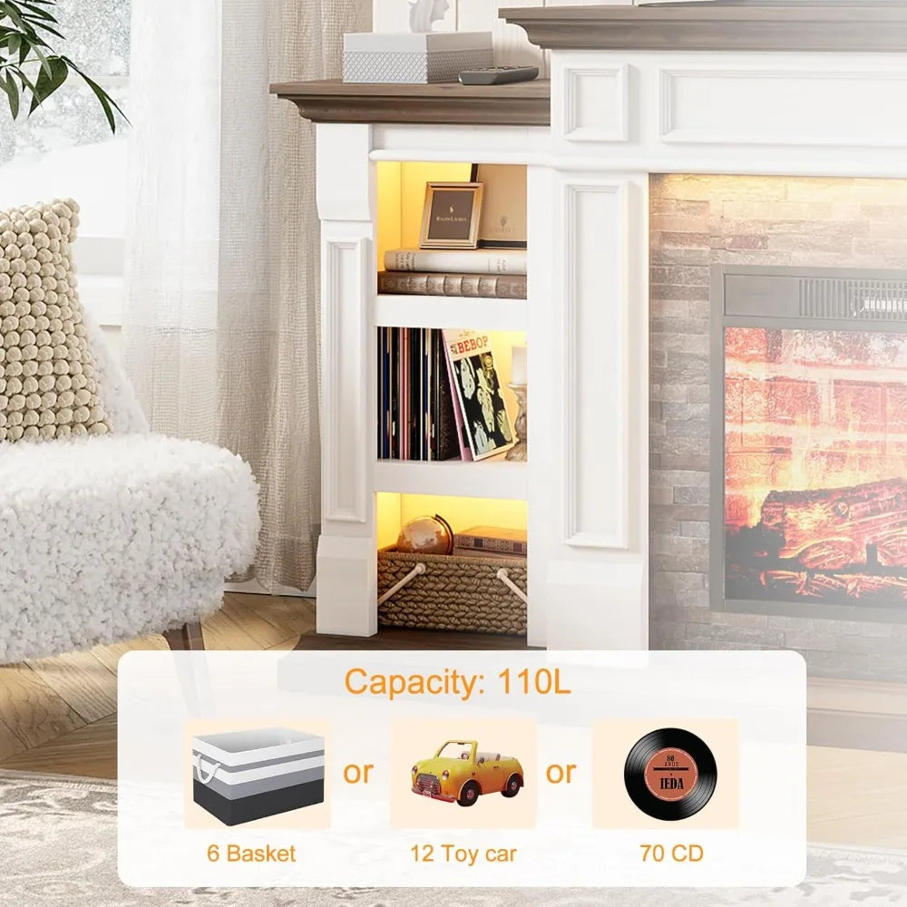 MKDK Electric Fireplace With Mantel And Storage Cabinets LED