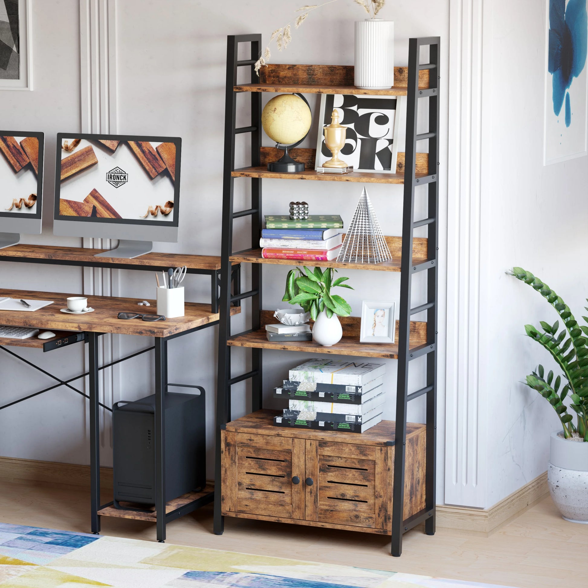 Ironck Bookshelf With Louvered Doors And Cabinet Storage
